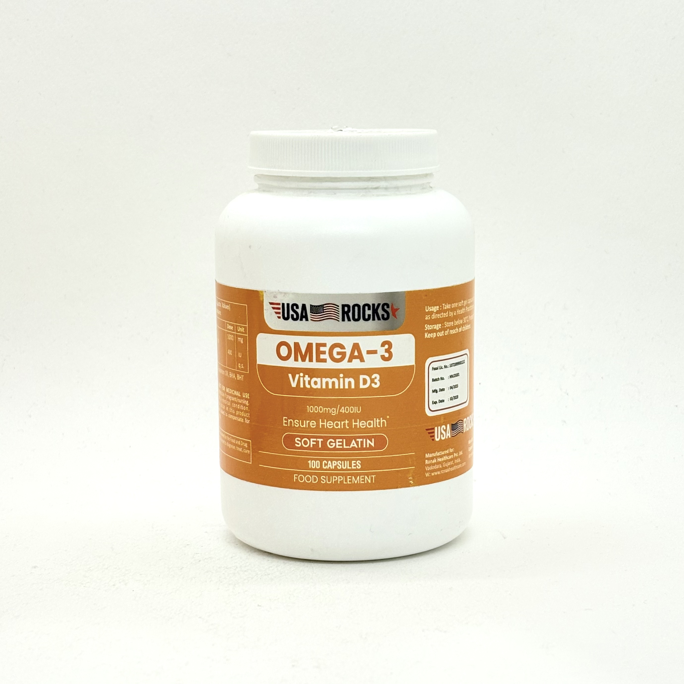 Usa Rocks Omega-3 & Vitamin D3 100 Capsules