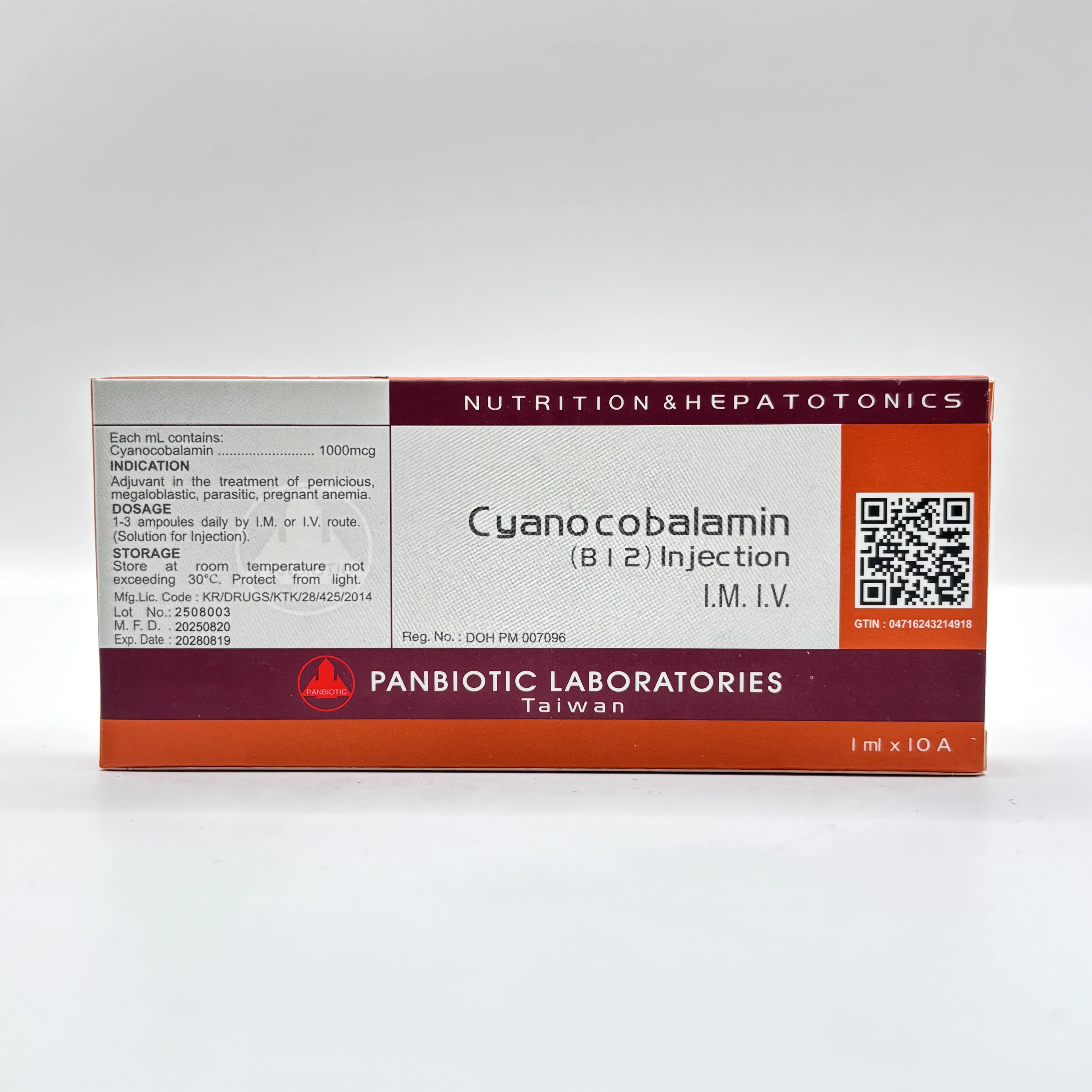 Cyanocobalamin 1000MCG Inj 10 Ampoules